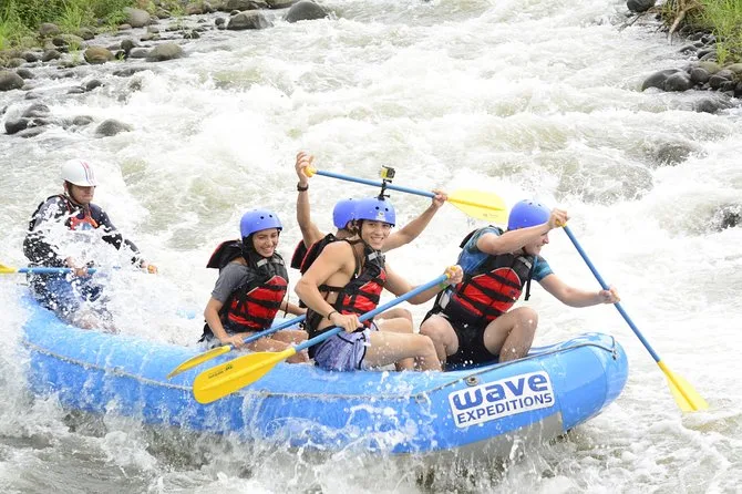 You’ll start high above La Fortuna on zip lines soaring over jungle canyons before paddling down Class II-III rapids on the Balsa River with guides who actually make you laugh. There’s fresh fruit breaks mid-river and a proper Costa Rican lunch at a local farm before heading back—expect adrenaline, muddy shoes, and maybe new friends by the end.