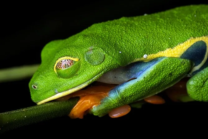 You’ll likely see red-eyed tree frogs, other amphibians, maybe sloths, nocturnal birds, or snakes.