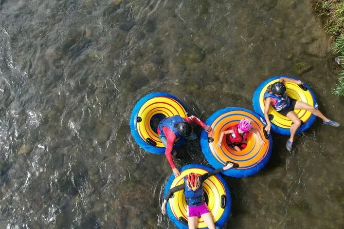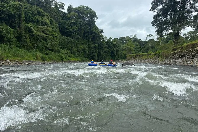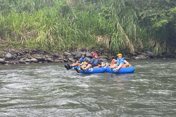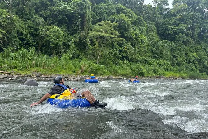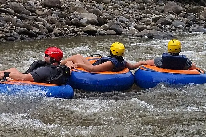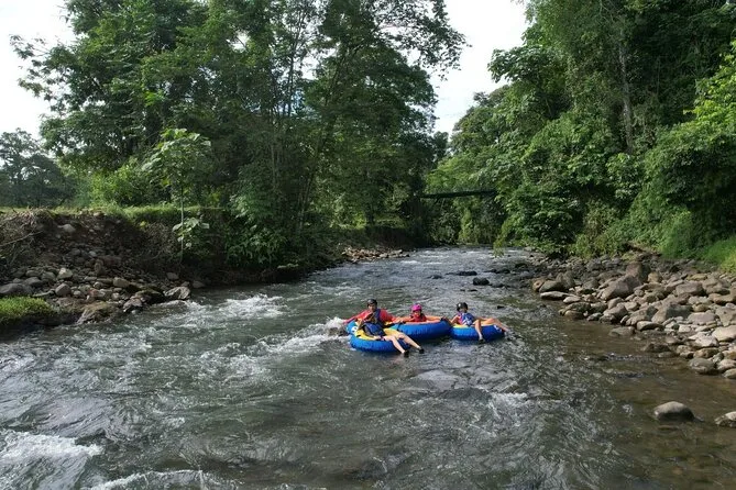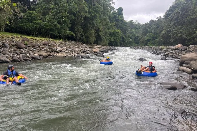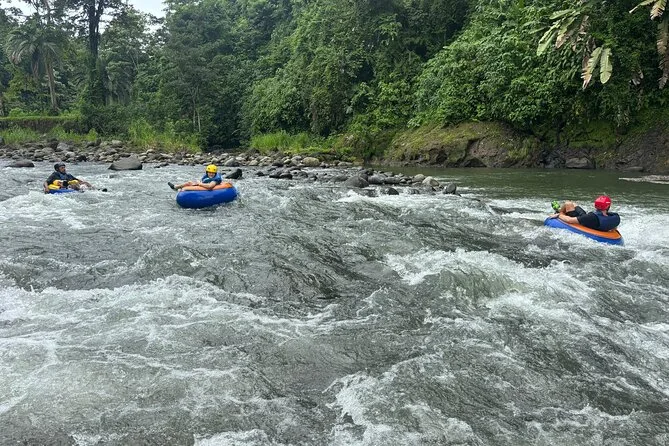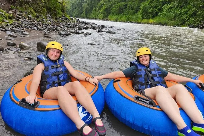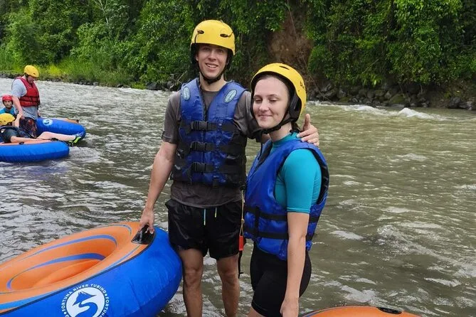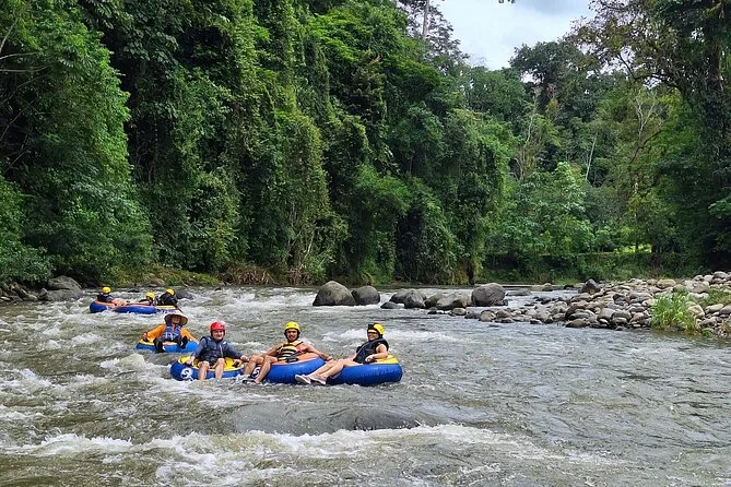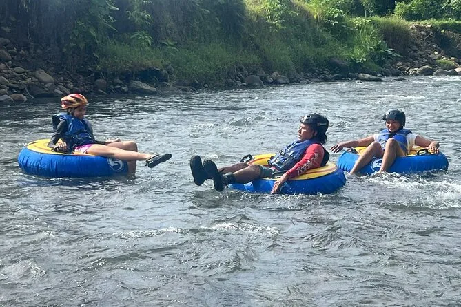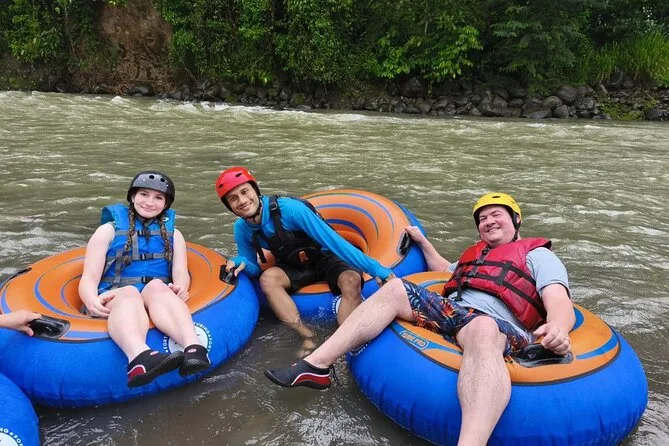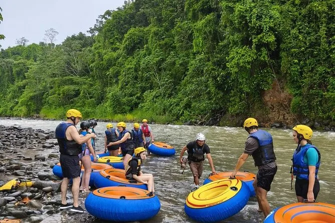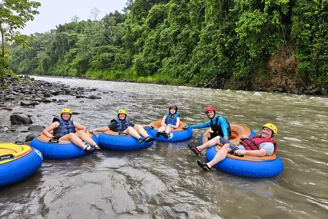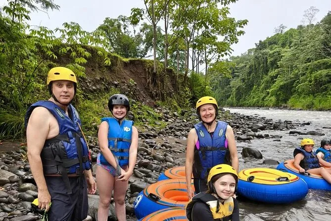 Your day includes a short transfer from La Fortuna to the Arenal River where friendly guides greet you; all safety equipment like helmet and life jacket; individual tube for each person; snacks to recharge after floating; plus towels so you can dry off before heading back into town.