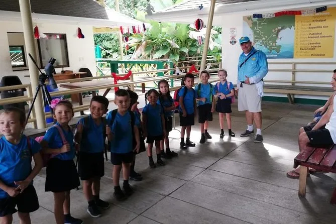 Your day includes pickup in an air-conditioned vehicle from nearby locations, entry into Manuel Antonio Park with an expert local guide leading the way, use of a telescope for wildlife spotting (and photos if you want), plus snacks along the trail before relaxing at the beach or exploring more paths on your own.