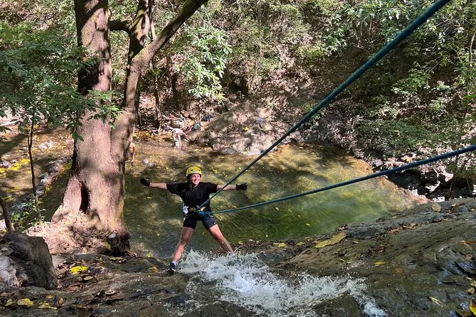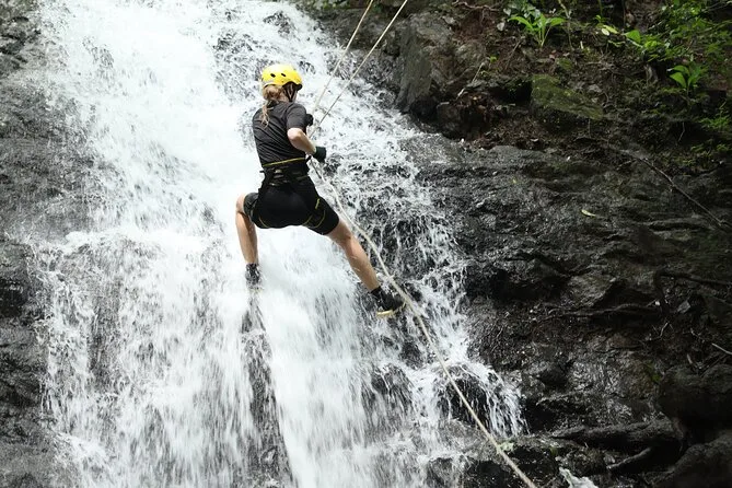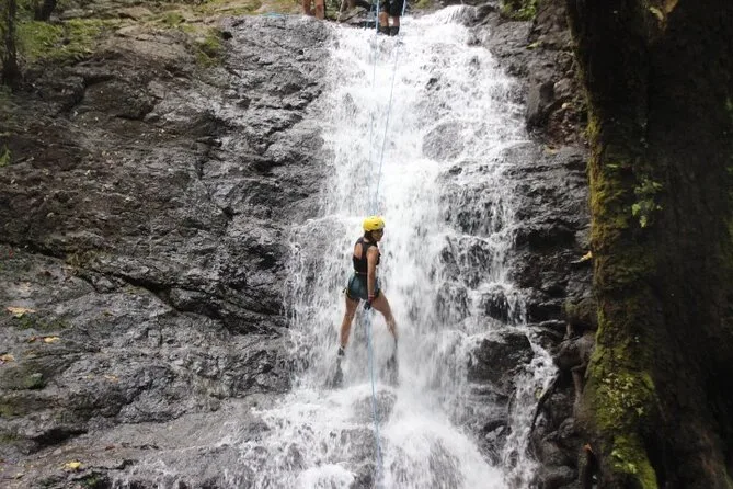 The waterfall’s called “the bad night”—locals say it roars loudest after heavy rain. Standing at the top, I could barely hear Daniel over the water. He showed us how to work the ropes and let us practice on a dry patch before anyone went near the edge. When it was my turn to rappel, my heart thumped so hard I almost missed his signal to start. The water hits your legs as soon as you lean back—cold but not freezing—and you’re halfway down before you realize your hands are shaking from excitement more than nerves. If you want to go again, just ask; they’ll let you take another run if there’s time.