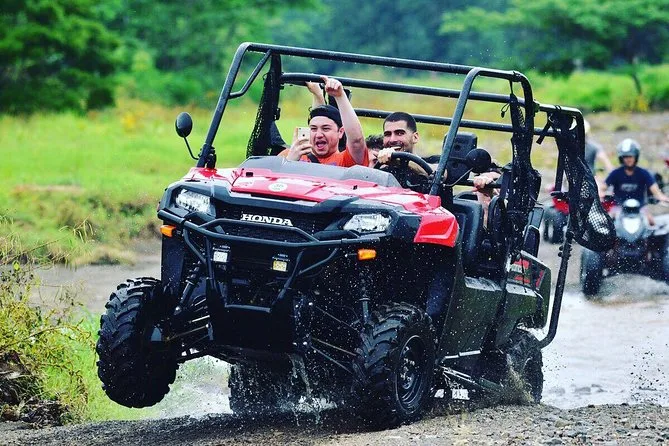 Before we got going, Luis ran us through buggy basics—nothing fancy, just straight talk and a quick spin around their private track. These buggies fit up to six but our group split into pairs; you’ll need at least two per vehicle. Once we hit the trails, it got real: muddy tracks, splashes from shallow rivers (my sneakers still have a mark), flashes of green everywhere. We passed banana plantations and even caught sight of a couple scarlet macaws overhead—bright red against all that green. There’s a waterfall stop where you can jump in if you’re feeling brave; I just dipped my toes but some folks went all in.