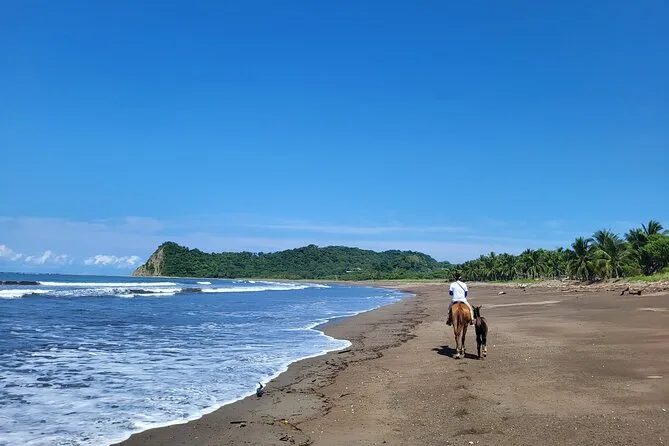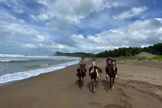 Depending on the season or if the river’s too high, sometimes you end up on Samara Beach instead. That’s what happened to us — the river was wild after last night’s rain. Didn’t really matter though; riding along the edge of the waves felt unreal anyway. There was this moment when everything went quiet except for the ocean and my horse’s breathing. I still think about that view sometimes.