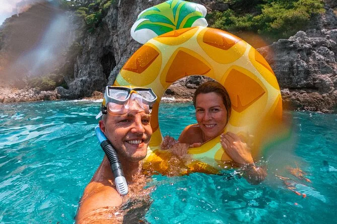 Snorkeling gear is included for all guests so you can explore underwater at each stop.