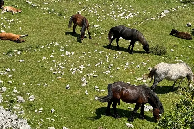 Your day includes free pickup from your hotel in Makarska by electric tuk tuk, all entrance fees to Biokovo Nature Park with priority skip-the-line tickets for the Skywalk experience, bottled water to keep you refreshed in the mountain air, homemade cherry liqueur tasting paired with traditional Croatian chocolate along one of two scenic photo stops, plus a friendly local guide who shares stories in English, German or Croatian before dropping you off back in town.