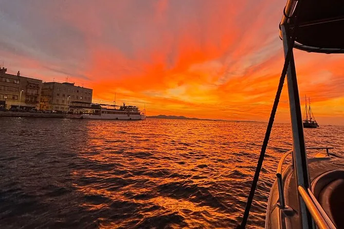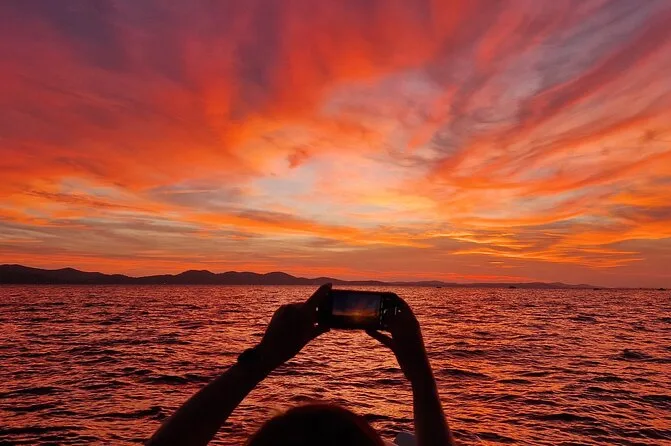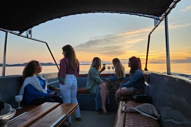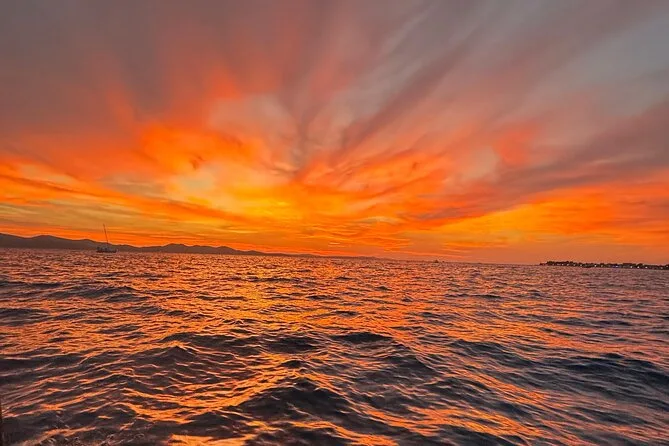 Your evening includes a relaxing boat ride from Foša harbor with a local guide at the helm, one refreshing drink (Aperol Spritz or Prosecco), music on board, and plenty of time to enjoy views of Zadar’s landmarks and that famous sunset before heading back ashore.