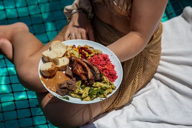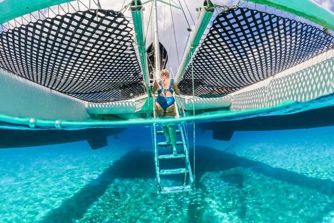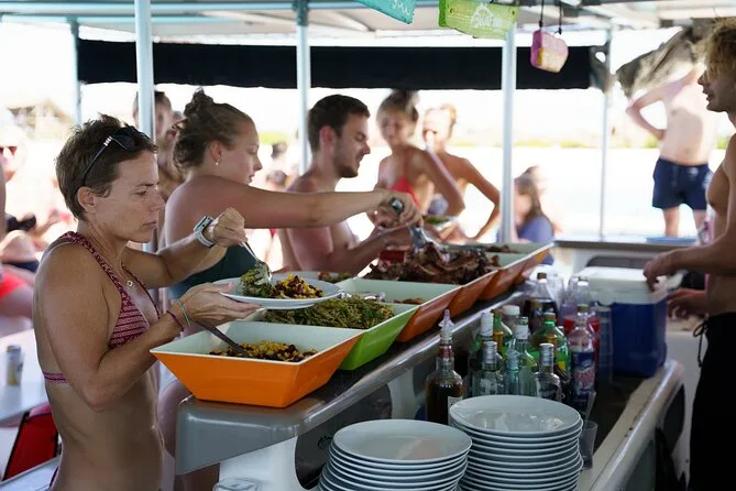 Your day includes roundtrip catamaran transport from Jan Thiel with local crew guiding you along; use of snorkeling gear; fresh fruit snacks; a BBQ buffet lunch featuring meats and salads; unlimited drinks from a premium open bar; plus time to explore Klein Curacao’s lighthouse and shipwrecks before heading back in the afternoon.