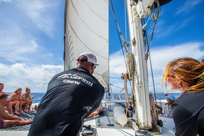 The BBQ lunch hit different after all that swimming — ribs, chicken, salads, bread with peanut sauce (I ate too much). People drifted between shade and sun; nobody seemed in a rush. The open bar meant cold Polar beers or rosé if you wanted it — someone tried every cocktail on offer just because they could. I still think about that easy feeling: salt in my hair, nowhere to be until the crew started calling us back for the sail home. If you’re thinking about a Klein Curacao day trip from Curacao… well, it’s one of those days that lingers oddly soft in your memory.