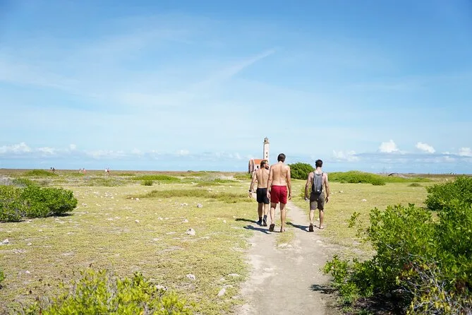 Our guide, Jeroen, joked about “the dry way” to get ashore but honestly, swimming felt right after all that sun. Water so clear you could see your toes — and then suddenly a turtle just gliding past like it owned the place. I’m not much of a snorkeler but I didn’t want to get out. When we finally did drag ourselves onto the sand (it’s finer than flour), there was this weird silence except for wind rattling through dry grass and someone laughing near the old shipwrecks. The lighthouse looks even more haunted up close.