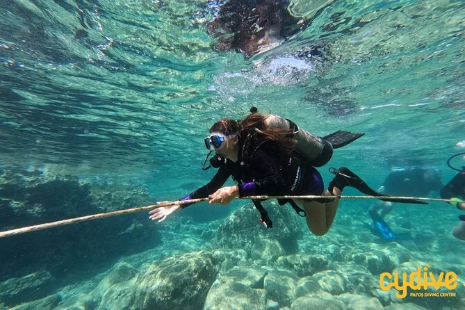 The open water dive takes place at the Roman Wall site near the dive center in Cyprus.