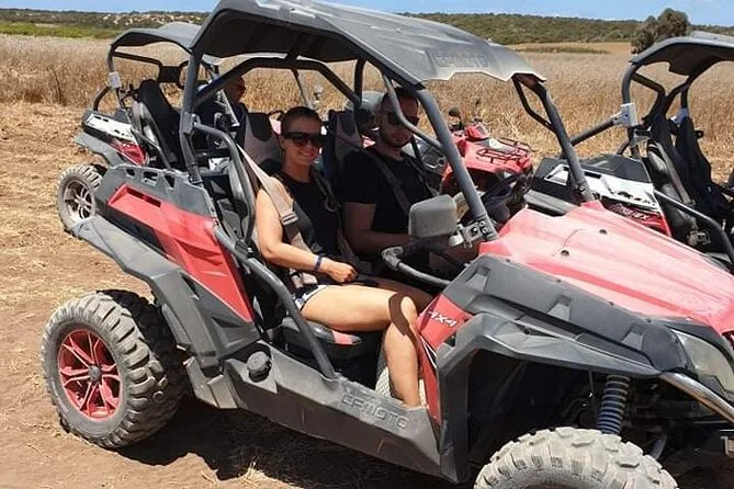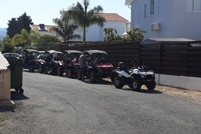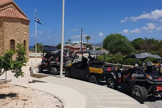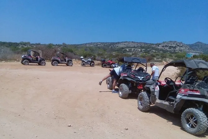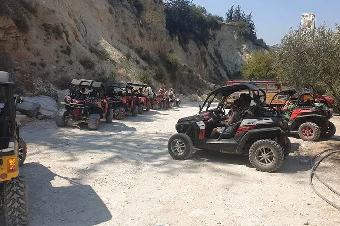 Your day includes use of quad bikes or buggies with safety goggles provided, free transfer from Coral Bay office if booked quickly (hotel pickup available for an extra fee), plus guidance from local staff throughout each stop—from sea caves to Lara Bay’s turtle beach and finally Adonis Waterfall (entrance fee not included).