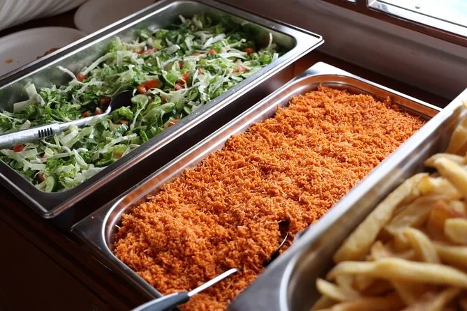 I didn’t expect to care about lunch, honestly — but when they brought out plates piled with fried chipped potatoes (the real Cypriot kind), Pourgouri, salad and smoky chicken fresh off the grill, it suddenly mattered a lot. There was this smell of oregano and sea salt in the air that made everything taste better. Someone tried to order another drink in Greek and our crew cracked up trying to teach her the right words. It was friendly in that way where you don’t feel like a tourist exactly — more like you’re just part of whatever’s happening on deck.