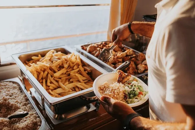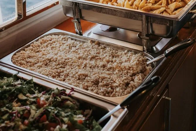 Yes, a freshly prepared Cypriot BBQ meal with sides is served onboard.