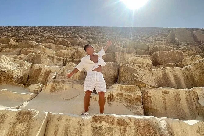 Als Erstes gehen wir direkt zur Großen Pyramide. Mahmoud streicht mit der Hand über einen der riesigen Steine und erzählt, wie jeder einzelne vor über 4.000 Jahren hierher transportiert wurde. Ich versuche mir vorzustellen, wie viel Geduld das gebraucht hat. Er zeigt auf Stellen, an denen noch Arbeiter-Kritzeleien zu erkennen sind, wenn man genau hinschaut (ich habe es versucht). Dort zu stehen, hört man Stimmen, die von den Steinen widerhallen, und spürt eine seltsame Ruhe trotz der vielen Touristen – als wüsste jeder, dass er an einem besonderen Ort ist. Aus irgendeinem Grund schoss mir das Stichwort „Tagesausflug Machu Picchu Cusco“ durch den Kopf; vielleicht, weil sich das hier wie eine ganz andere Welt anfühlt.