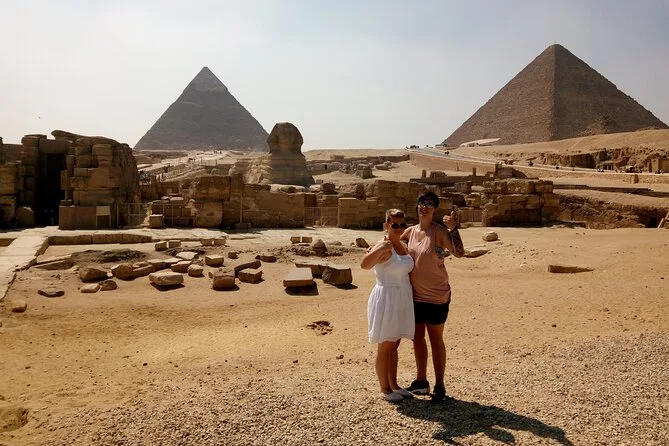 Du gehst direkt zu den legendären Pyramiden von Gizeh mit einem lokalen Guide, der ihre Geschichten lebendig macht, spürst den alten Stein unter deinen Fingern, siehst die Sphinx aus nächster Nähe und reist bequem mit Hotelabholung und inklusive Eintritt. Erwarte echte Momente – Lachen, Staunen – die lange nachwirken.