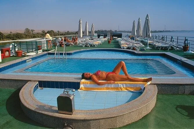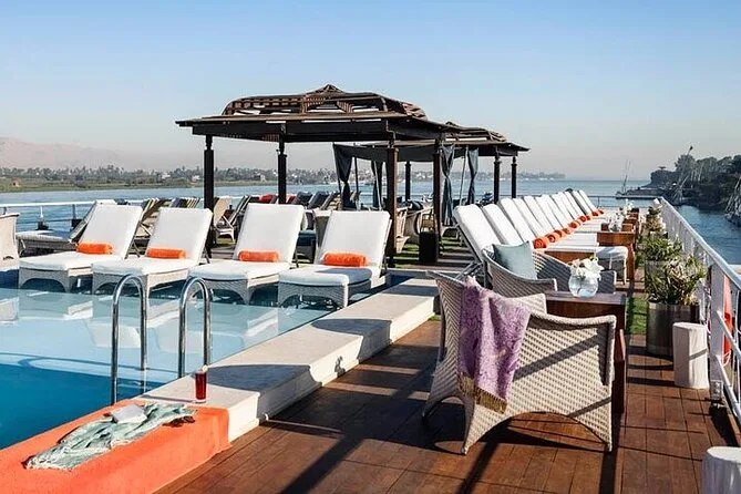 Du übernachtest auf einem 5-Sterne-Nilkreuzfahrtschiff mit privaten Kabinen und Vollpension.