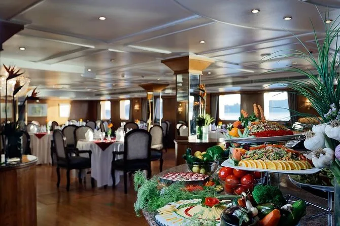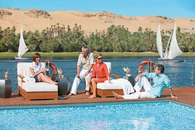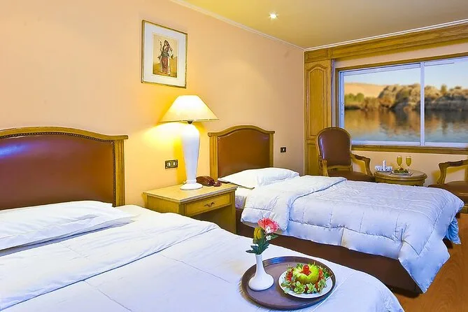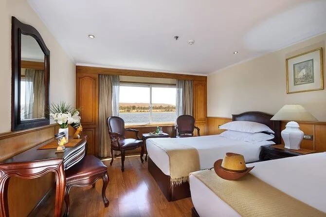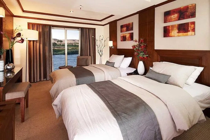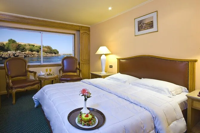 Du wohnst auf einem komfortablen 5-Sterne-Nilkreuzfahrtschiff mit Vollpension.