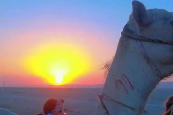 Auf dieser Kamelritt-Tour an Luxors Westbank schlenderst du mit einem lokalen Guide durch Dörfer und Felder, triffst freundliche Gesichter, machst Pausen für Ziegen oder Tee und genießt vielleicht den Sonnenuntergang über der Wüste – Momente, die lange nachklingen.