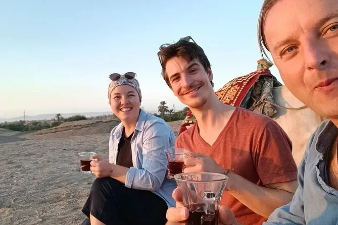 Wenn du die Sonnenuntergangstour wählst (ich habe es getan), gibt es diesen Moment, in dem alles golden und still wird, bis auf die entfernten Gebetsrufe. Wir ritten hinaus in die offene Wüste zum Tee – nur wir, Mahmoud und zwei Kamele, die gemütlich neben uns kauten. Der Tee war heiß und rauchig; ehrlich gesagt denke ich noch oft an den Ausblick über Luxor, mit dem schimmernden Nil in der Ferne. Es fühlte sich an, als würde die Zeit für einen Moment stillstehen. Mehr kann ich dazu kaum sagen.