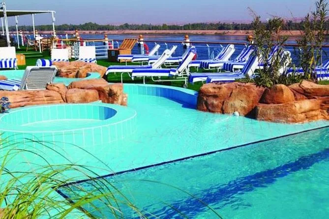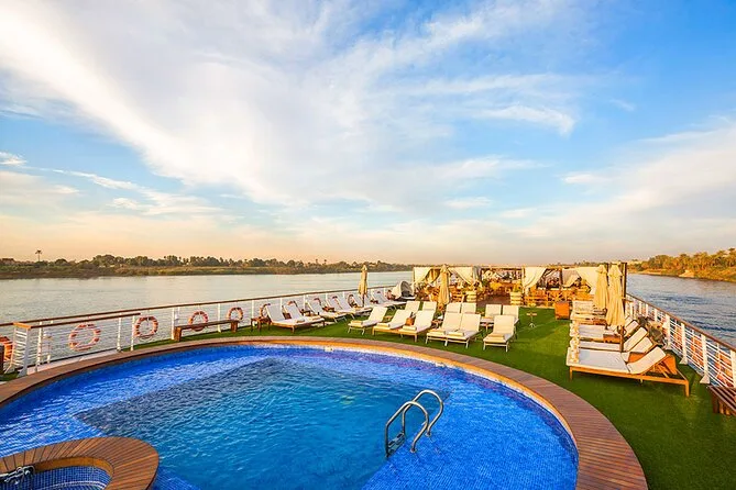 Auf einer 5-Sterne-Nilkreuzfahrt von Aswan nach Luxor gleitest du vorbei an Philae per Boot, stehst früh auf für Abu Simbels gewaltige Statuen, schwebst im Heißluftballon über Luxors Gräber und teilst mit deinem Ägyptologen-Guide unvergessliche Momente voller Staunen und kleiner Überraschungen zwischen antiken Steinen und Flussbrisen.
