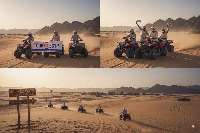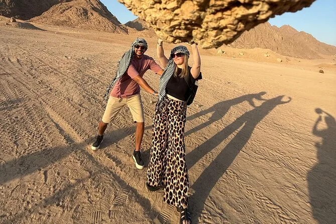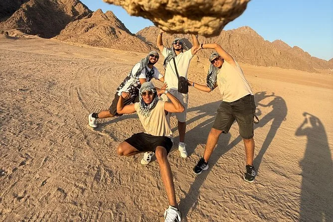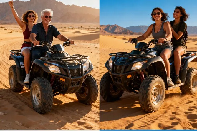 Rase mit dem Quad durch die Wüste von Sharm El Sheikh, genieße den Sonnenaufgang und besuche ein Beduinen-Dorf für traditionellen Tee vom offenen Feuer. Lachen, Sand an den Händen und echte Begegnungen mit Einheimischen – dieses Erlebnis bleibt lange im Herzen.