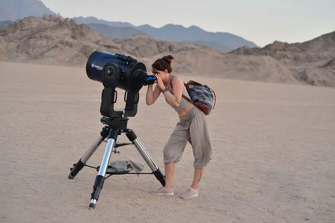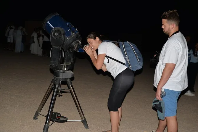 Der nächste Teil ist etwas verschwommen – nochmal eine kurze Quad-Fahrt (meine Arme fingen langsam an zu schmerzen), dann erreichten wir einen großen Platz, wo das Abendessen unter Laternen vorbereitet war. Das Essen überraschte mich: gegrilltes Hühnchen, Salate und sogar vegane Gerichte für meine Freundin. Es gab auch eine Live-Show – Bauchtanz und ein Typ, der in einem Regenbogenrock so schnell wirbelte, dass mir beim Zuschauen schwindelig wurde. Die Kinder waren begeistert, und ehrlich gesagt auch die Erwachsenen. Nach dem Essen gingen wir zu riesigen Teleskopen, die abseits vom Licht aufgebaut waren. Einer der Astronomie-Guides zeigte uns die Ringe des Saturn – so etwas hatte ich noch nie durch ein Teleskop gesehen. Es wurde schnell kalt, also am besten eine zusätzliche Jacke mitnehmen.