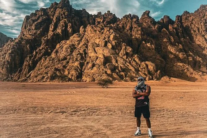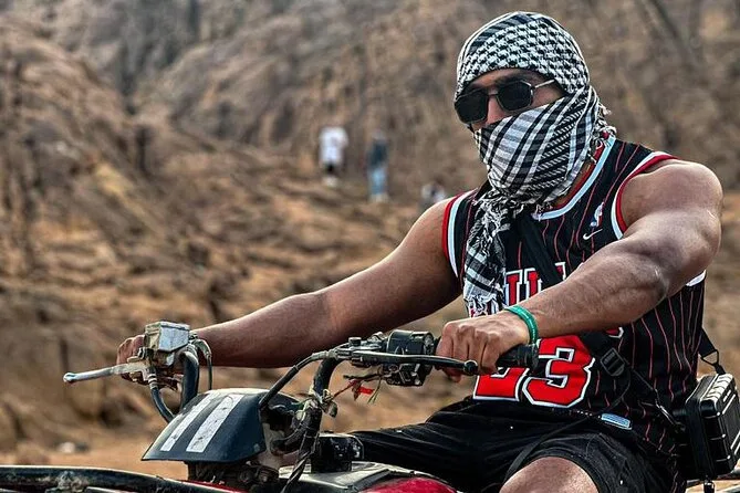 Spüre den Wüstenwind auf einem Quad bei Sharm El Sheikh, reite Kamele bei Sonnenuntergang, genieße süßen Beduinen-Tee im traditionellen Zelt, teile ein Abendessen unter Laternen mit Live-Musik und Tanz und beobachte Saturn und Jupiter durch starke Teleskope – alles inklusive Hoteltransfer.