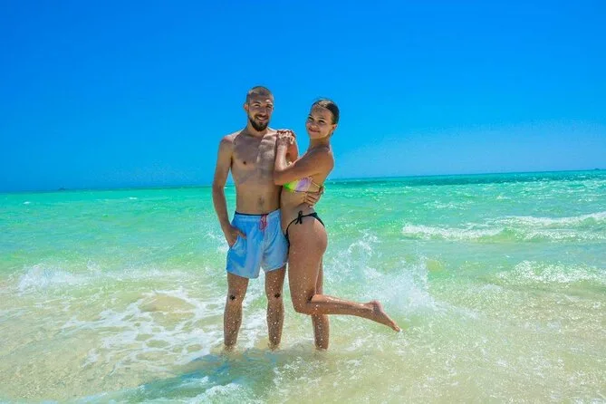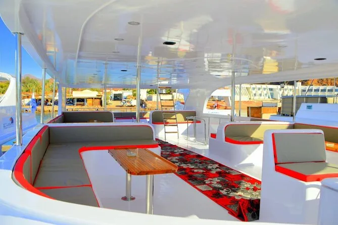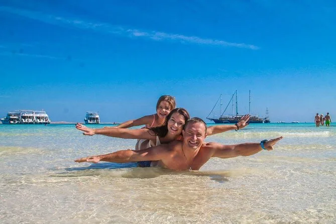 Dein Tag beginnt mit der Abholung vom Hotel in Sharm El Sheikh mit einem klimatisierten Fahrzeug direkt zum Hafen, wo dein VIP-Boot auf dich wartet; geführtes Schnorcheln an beiden Spots Ras Mohammed und White Island; unbegrenzt Softdrinks, Heißgetränke und Mineralwasser den ganzen Tag; ein frisch zubereitetes Mittagessen an Bord mit Meeresfrüchten; viel Zeit zum Entspannen an Deck oder zum Erkunden der Sandstrände, bevor du bei Sonnenuntergang bequem zurück ins Hotel gebracht wirst.