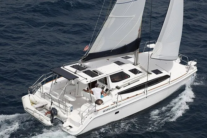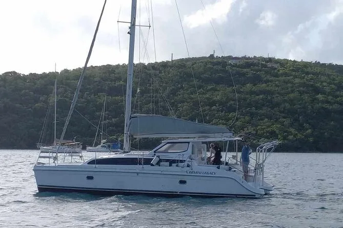 Dein Tag umfasst die private Nutzung des Katamarans Gemini Legacy für bis zu acht Gäste; Abholung ab Red Hook oder Cruz Bay; Schnorchelausrüstung an Bord; eine Auswahl an Bier, lokalen Seas the Day Rum Punch, Softdrinks und Wasser; sowie viel Zeit zum Schwimmen und Entspannen, bevor ihr zum Sonnenuntergang zurückkehrt.