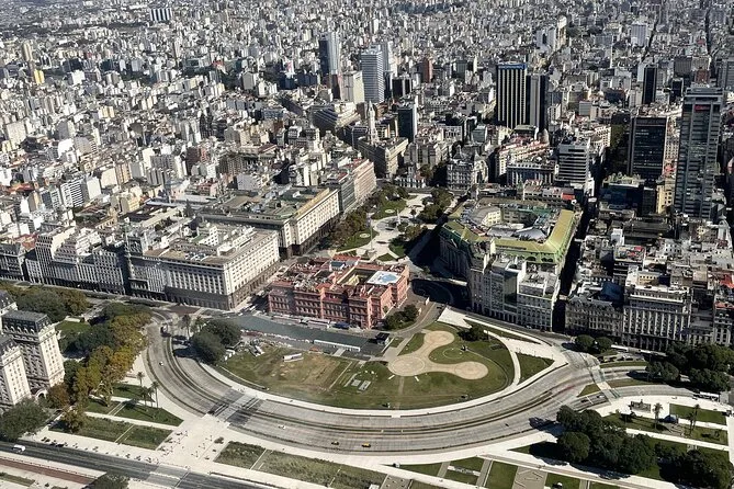 Du fliegst über den Obelisken, die Avenida 9 de Julio, Puerto Madero, den Friedhof Recoleta und das Casa Rosada.
