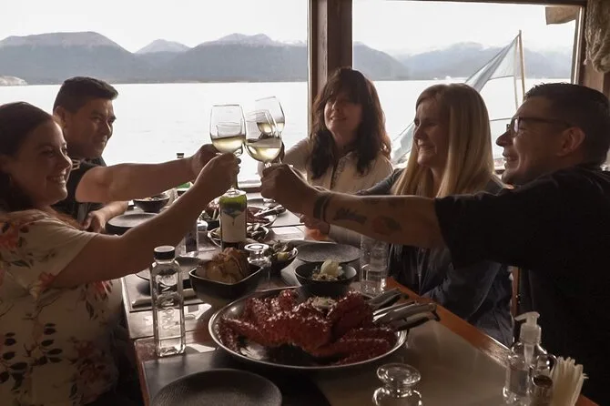 Dein Tag startet mit Abholung vom Hotel in Ushuaia, alle Transfers erfolgen im klimatisierten 4x4. Genieße Kaffee oder Tee mit hausgemachten Snacks an der Laguna Victoria, ein Glas Wein pro Person zum dreigängigen Meeresfrüchte-Mittagessen mit Blick auf den Beagle-Kanal in Puerto Almanza (z.B. Krabben-Empanada als Vorspeise und Hauptgericht), dazu eine leichte geführte Wanderung durch den Lenga-Wald zum Wasserfall Cascada del Duende, bevor es zurück in die Stadt geht.