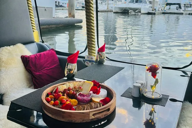 Du bekommst roten Teppich beim Einsteigen, eine Flasche gekühlten Wein und eine feine Käseplatte direkt an Bord serviert. Die ganze Tour ist privat – nur du und deine Gruppe für 1,5 Stunden auf dem Wasser.