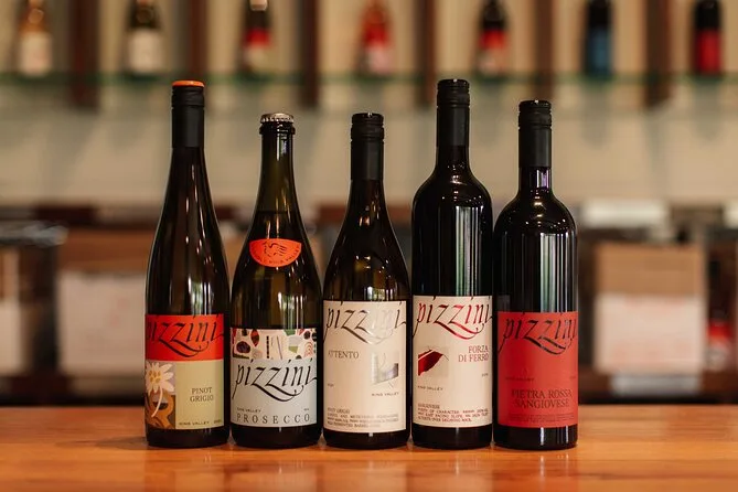 Dein Besuch umfasst eine private, geführte Weinprobe mit aktuellen und gereiften Weinen, begleitet von einem lokalen Mitglied der Pizzini-Familie, sowie deine Weinwahl mit einer italienischen Grazing-Platte, die du draußen auf dem Gelände genießen kannst.
