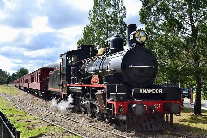 Dein Tag beinhaltet dein Ticket für die Mary Valley Rattler Dampflok-Rundfahrt zwischen Gympie Station und Amamoor mit Zeit, das Amamoor Village Green zu erkunden. Ehrenamtliche Guides erzählen unterwegs spannende Geschichten – einfach am Bahnhof Gympie erscheinen und eine entspannte Tour durch die Landschaft Queenslands genießen.