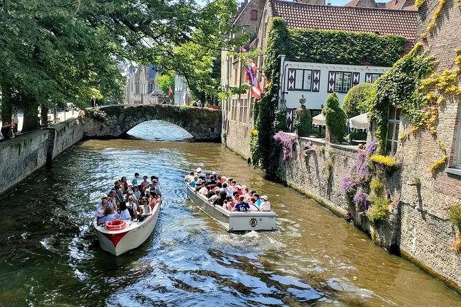 Dein Tag umfasst einen geführten Spaziergang durch das historische Brügge mit Stopps an Sehenswürdigkeiten wie dem Markt und der Bonifacius-Brücke, eine halbstündige gemeinsame Bootstour mit Erläuterungen vom Kapitän, eine belgische Schokoladenverkostung unterwegs sowie eine praktische Stadtkarte vom Guide für deine eigene Erkundung danach.