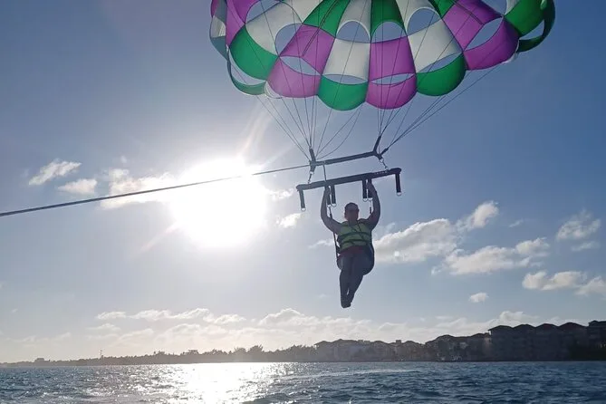 Der Start war überraschend sanft. Plötzlich berührten meine Beine nichts mehr, und es herrschte eine Ruhe – nur das Rauschen des Windes im Schirm und entfernte Rufe von Strandbesuchern. Die Farben unter uns wirkten von dort oben ganz anders; das Meer wechselte von hellem Grün zu tiefem Blau, und Luis zeigte auf einen Schatten am Riff. „Rochen oder Schildkröte?“, rief er nach oben. Ich versuchte, etwas zu erkennen, blinzelte aber meist nur gegen die Sonne. Rund 15 Minuten schien die Zeit stillzustehen. Mein Herz schlug schneller, als mir bewusst wurde, wie hoch wir waren – doch dann wurde es fast friedlich, über diesem klaren Wasser zu schweben.