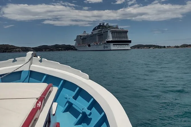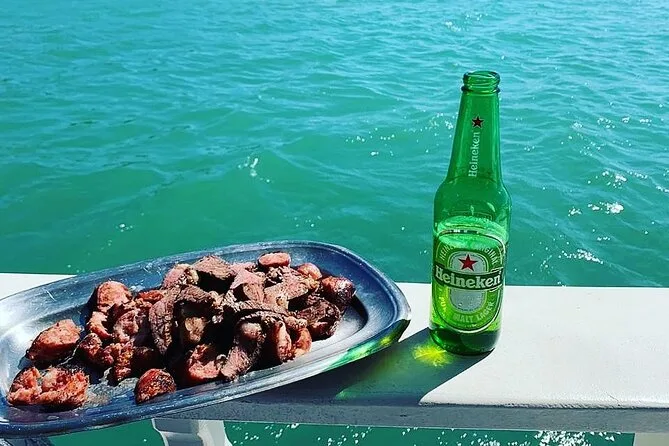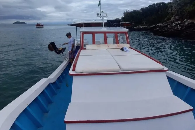 Dein Tag umfasst die private Nutzung der Drumond 1 mit Bluetooth-Soundsystem, schwimmenden Matten und Teppichen zum Relaxen oder Schwimmen an den schönsten Stränden von Búzios, drei Schnorchelmasken zum Teilen sowie eine Toilette an Bord für Komfort. Außerdem gibt es einen Grill mit Holzkohle, eine Kühlbox mit Eis und Mineralwasser – die Essensoptionen sind flexibel, sodass du ein Buffet dazubuchen oder eigene Snacks mitbringen kannst.