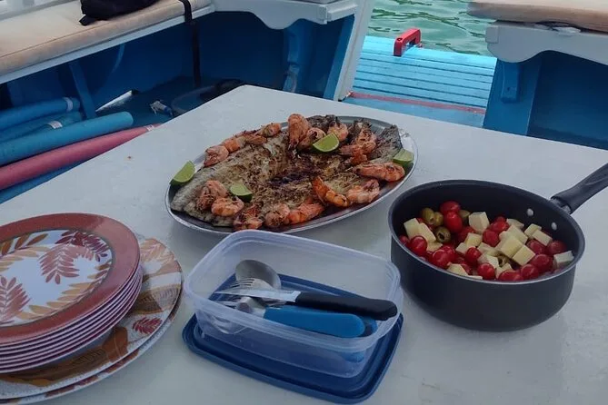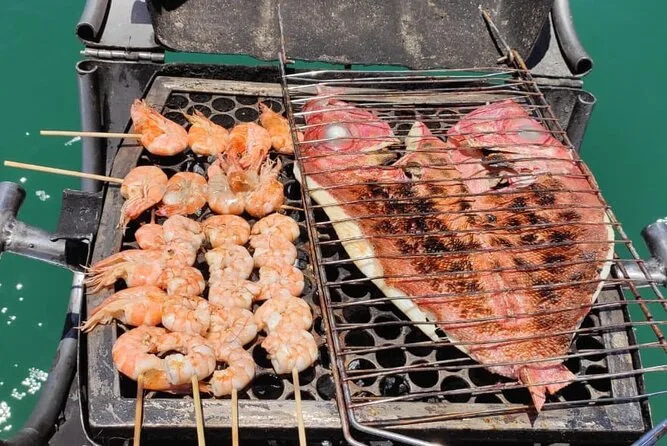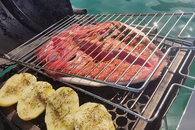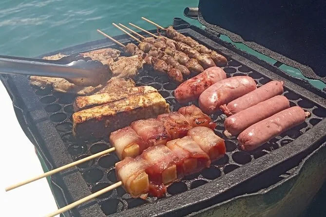Hungrig wurde ich schneller als gedacht. Direkt an Deck steht ein Grill – der Duft von Holzkohle gemischt mit Meeresluft bleibt mir noch lange im Kopf. Wir hatten zwar eigene Snacks dabei, aber nächstes Mal würde ich das Buffetangebot wählen; man kann es sogar individuell zusammenstellen. Jedenfalls haben wir uns ordentlich den Bauch vollgeschlagen und sind danach einfach nur noch entspannt auf dem Wasser getrieben, ohne viel zu reden. Die Sonne spielte mit Wolken – mal blendend hell, mal sanftes Licht auf den Wellen. Es fühlte sich an, als würden nur ein paar neugierige Fische zuschauen.