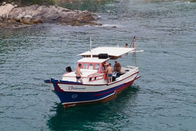 Mit deiner eigenen Gruppe gleitest du auf der Drumond 1 durch die ruhigen Buchten von Búzios, hältst an versteckten Stränden zum Schwimmen oder Relaxen auf schwimmenden Teppichen. Genieße ein Grillessen an Bord oder wähle ein individuell zusammengestelltes Buffet – dazu gibt’s Geschichten von lokalen Fischern, Musik und jede Menge entspannte Stimmung. Kein Stress, kein Showprogramm, einfach echt.