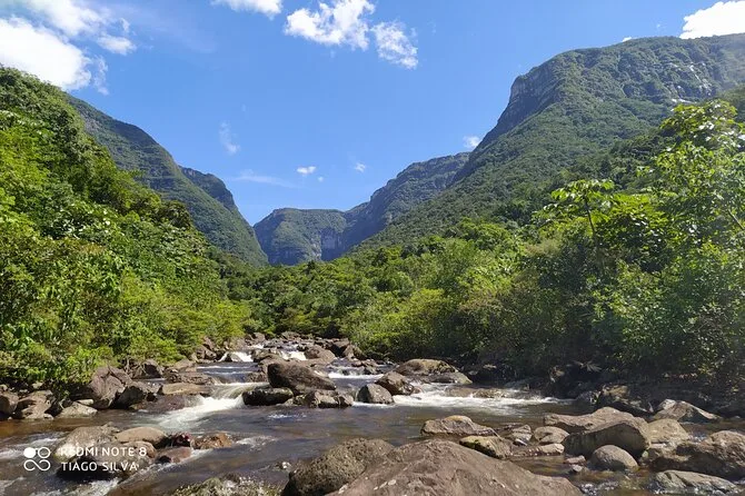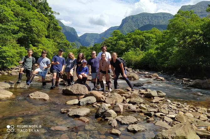 Wir folgten dem Pfad am Malacara-Fluss entlang, während unsere Schuhe über Kiesel knirschten. Der Wald roch herrlich frisch – wie nasses Laub nach einem Regenschauer. Rafael zeigte auf einen leuchtend blauen Schmetterling („borboleta azul“), der neben wildem Ingwer umherflatterte. Nach der ersten Flussquerung – das Wasser war zwar kühl, aber gut machbar – legten wir eine Pause ein. Rafael hob einen glatten Stein auf und erzählte, wie diese Canyons über Jahrtausende entstanden sind. Über uns zwitscherten Vögel, und ab und zu ließ eine Brise Wassertropfen von den Blättern fallen.