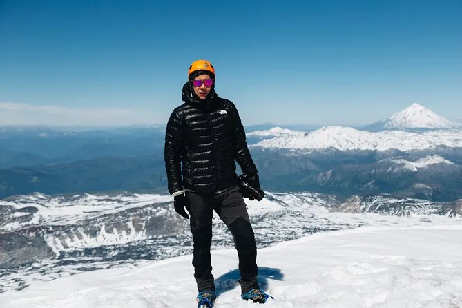 Dein Tag startet mit Abholung im klimatisierten Fahrzeug ab Pucón, inklusive hochwertiger Bergausrüstung (Steigeisen, Helm, Eispickel, Schuhe), Eintrittskarten für den Villarrica Nationalpark, Unfallversicherung während der Tour und kalten Bieren zum Abschluss am Basislager.