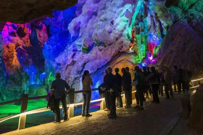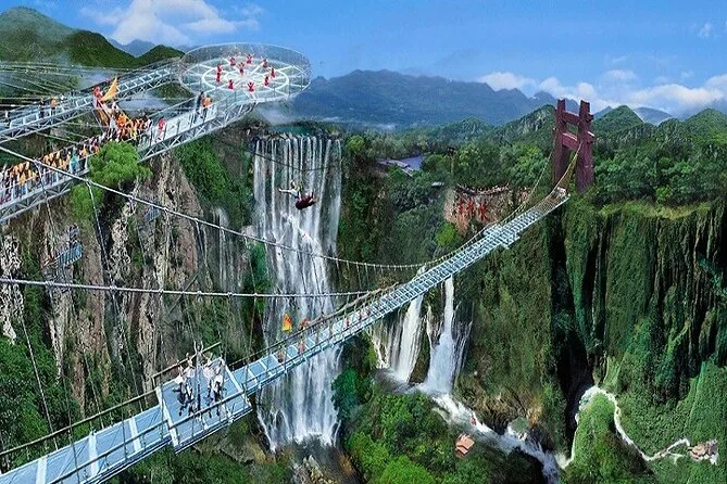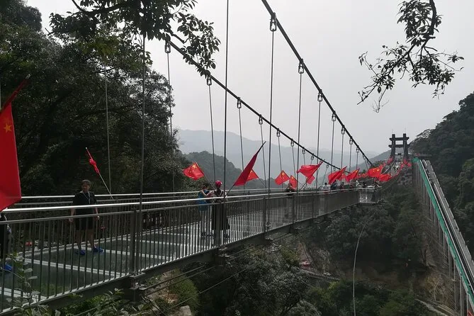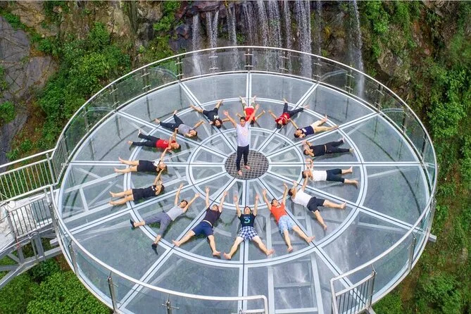 Erlebe die Glasbrücke in der Gulong-Schlucht mit einem lokalen Guide, bewundere neun Wasserfälle an grünen Hängen und gleite mit dem Boot durch den unterirdischen Fluss der Jinlong-Höhle. Inklusive Abholung vom Hotel in Guangzhou, privatem Transport, Eintritt und einem kantonesischen Mittagessen – ein Tag, den du lange in Erinnerung behalten wirst.