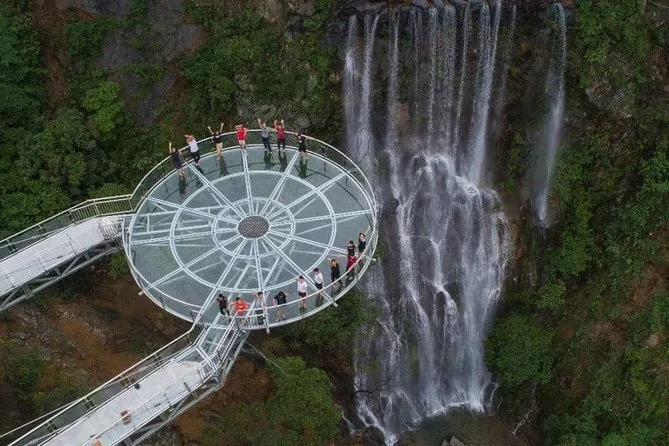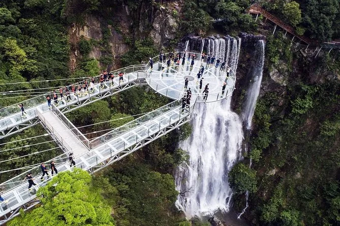 Erlebe die berühmte Glasbrücke im Gulong Canyon mit einem lokalen Guide ab Guangzhou, bewundere tosende Wasserfälle und genieße den Ausblick von einer hoch über der Schlucht schwebenden Plattform. Inklusive Hoteltransfer und optionalem Mittagessen – plus unvergessliche Momente, die lange bleiben.