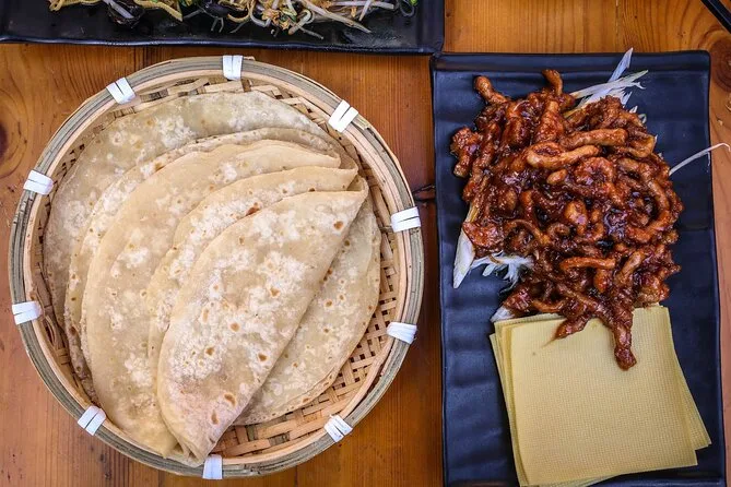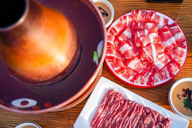 Du probierst Frühlingspfannkuchen, traditionellen Hotpot in Kupfertöpfen, „Pekinger Nudeln“ und weitere lokale Spezialitäten.