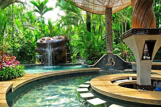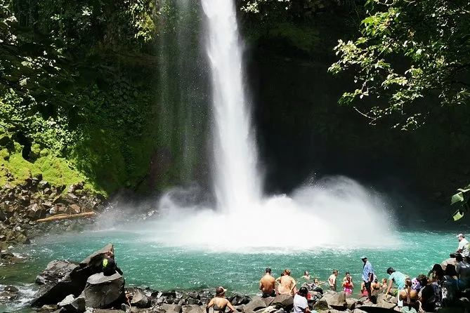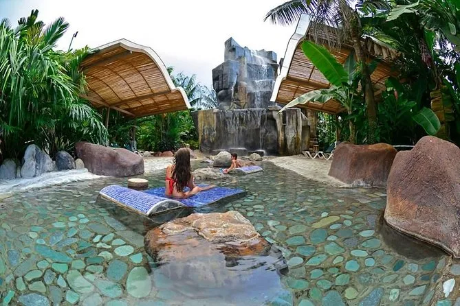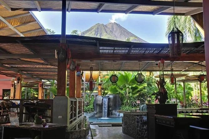 Der dritte Tag stand ganz im Zeichen des Arenal. Unser Guide Andrés kannte jede Abkürzung in La Fortuna und erzählte Geschichten darüber, wie die Einheimischen früher nachts nach Rauch vom Vulkan Ausschau hielten. Der Abstieg zum Wasserfall La Fortuna ist steil – meine Waden spürten das – aber jeder Schritt lohnte sich. Das Rauschen des Wassers wurde mit jedem Meter lauter; unten am Becken angekommen, war es fast ohrenbetäubend. Einige wagten sich unter die Wasserfälle – ich habe nur meine Zehen ins Wasser getaucht (es ist kälter, als man denkt). Danach ging es zum Mittagessen in die Baldi Hot Springs: Buffet mit viel frischem Obst und lokalen Gerichten wie arroz con pollo. Anschließend in den Thermalbecken zu entspannen, während der Regen sanft auf die Palmenblätter trommelte, war pures Glück.