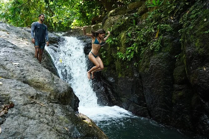 Du schwimmst unter Dschungelwasserfällen, wagst dich auf eine natürliche Felsrutsche, teilst ein Bio-Mittagessen im Regenwald mit neuen Freunden und landest an einem ruhigen Strand, den nur Einheimische kennen. Mit bequemer Abholung und Guides, die hier aufgewachsen sind, fühlt sich dieser Tagesausflug eher wie ein Willkommen in den Lieblingsmomenten eines Freundes an.