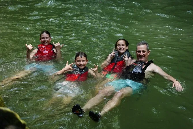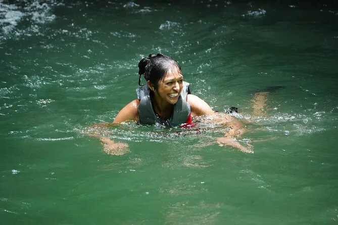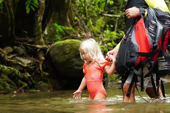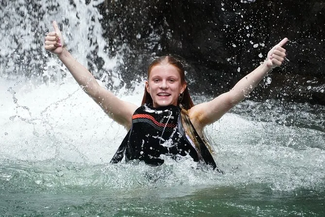 Dein Tag beinhaltet die klimatisierte Abholung und Rückfahrt zum Hotel, alle nötigen Ausrüstungen wie trockene Taschen und Sicherheitsausrüstung (inklusive Erste-Hilfe-Set), Wasserflaschen und Snacks während der Tour sowie ein Bio-Mittagessen im Regenwald mit Auswahl für Fischliebhaber, Hühnchenfans und Veganer – bevor es bequem zurückgeht.