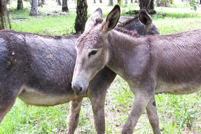 Wir stiegen an einem kleinen Teich aus, wo Gänse ordentlich Krach machten – lauter, als ich erwartet hatte. Luis reichte uns frische Mangoscheiben und zeigte, wie die Farm mit Solarpanels Strom erzeugt und Regenwasser für die Bewässerung sammelt. Hier scheint wirklich nichts verloren zu gehen. Während wir an Eseln vorbeigingen, die gemütlich Heu fraßen, und Schafen, die sich im Schatten eines Baumes zusammenkauerten, erklärte er die RSPO-Zertifizierung und warum nachhaltiges Palmöl für Einheimische und Tiere so wichtig ist. Es fühlte sich eher an wie ein Gespräch mit jemandem, der wirklich für dieses Land brennt, statt wie ein Vortrag.