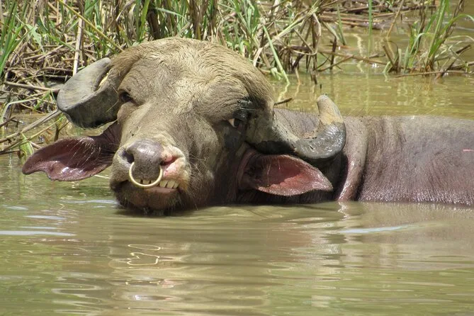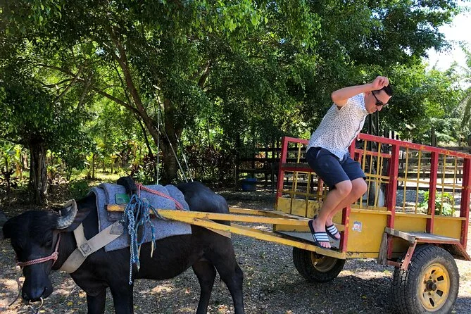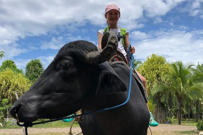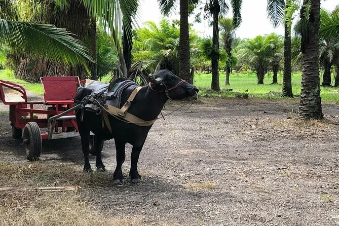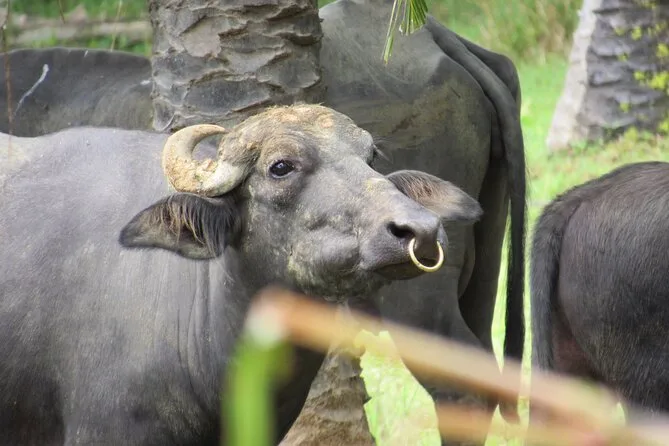 Erlebe Wasserbüffel hautnah, fahre durch grüne Bambushaine und sieh, wie nachhaltige Landwirtschaft funktioniert. Triff freundliche Tiere, koste frisches Obst und verstehe, warum diese Eco Farm für die Region so bedeutend ist.