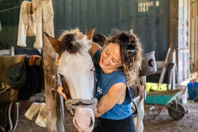 Auf dem Rückweg ging es durch dichten Wald, der nach Grün und Leben roch – schwer zu beschreiben, wenn man es nicht selbst erlebt hat. Am Ende zeigte Diego uns, wie man die Ponys abduscht (die Pferde schienen das viel mehr zu genießen als wir). Meine Beine fühlten sich komisch wackelig an, als ich abstieg; aber ich denke immer noch gern an den Blick über den Fluss zurück, das Sonnenlicht, das auf dem Wasser tanzte, und all die Vogelrufe um uns herum.